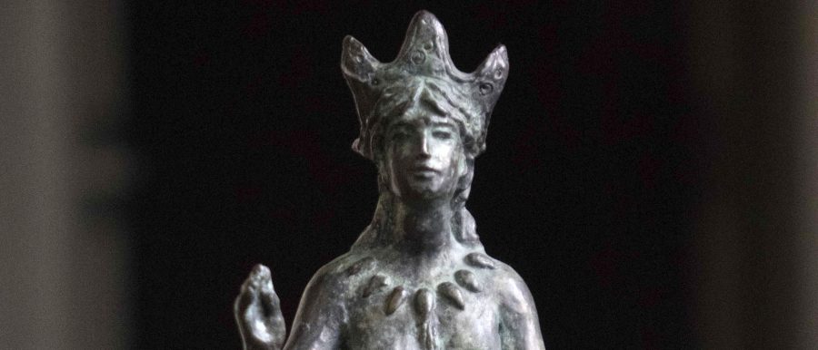 Semiramis was a legendary Assyrian queen who ruled with wisdom, strength and steadiness. The statuette is an original work by Swiss sculptor Peter Hartmann, whose bronzes are exhibited throughout Geneva in parks and public places.